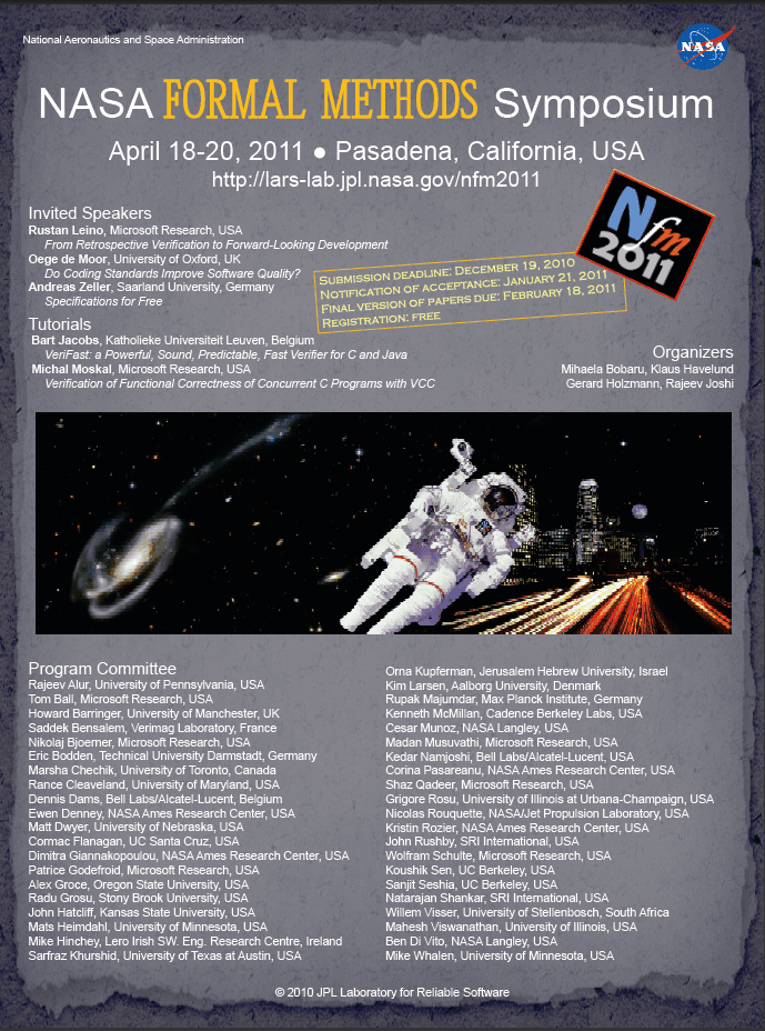 - 3rd nasa formal methods symposium, pasadena, ca, april 2011